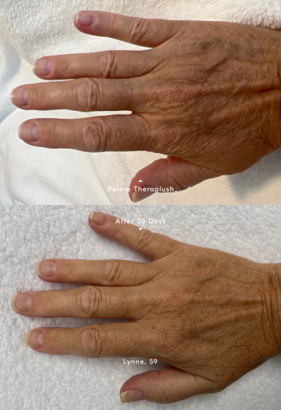 Applying Theraplush as the last step before bed allows these heroingredients to work uninterrupted all night, resulting in a just-manicured feeling by morning. Over time, you will see improvementwith smoothing crepey skin and enhancing elasticity.