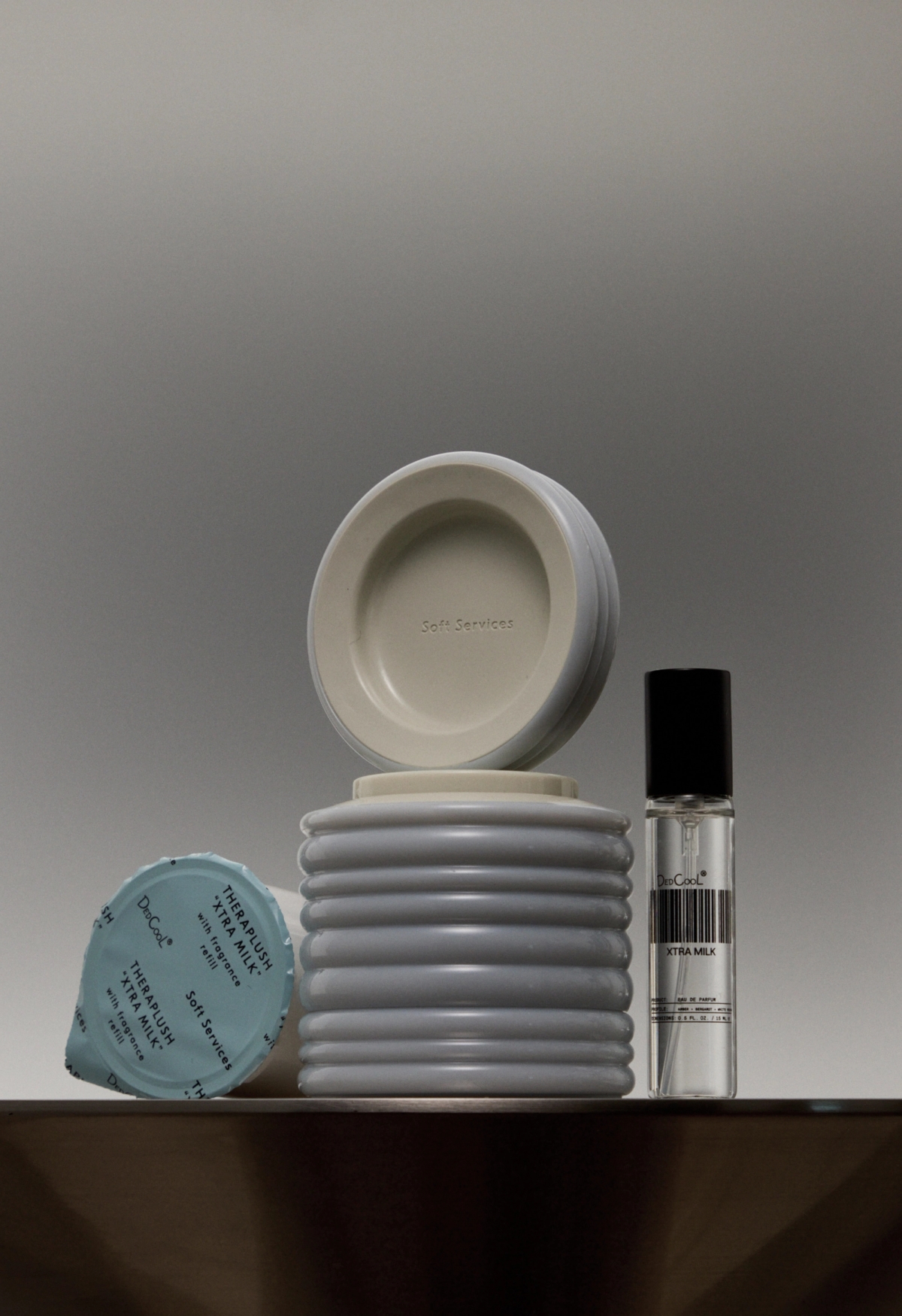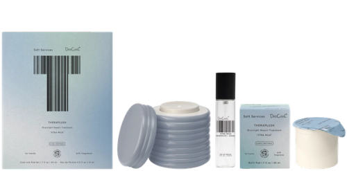 A partnership uniting two bestsellers: Soft Services Theraplush and DedCool Xtra Milk. Notes of bergamot, amber, and white musk wrap hands in a clean, airy, and lightly sensual scent cloud, while the powerhouse formula works overnight to restore hands and cuticles. An obsessively repeatable bedtime ritual.