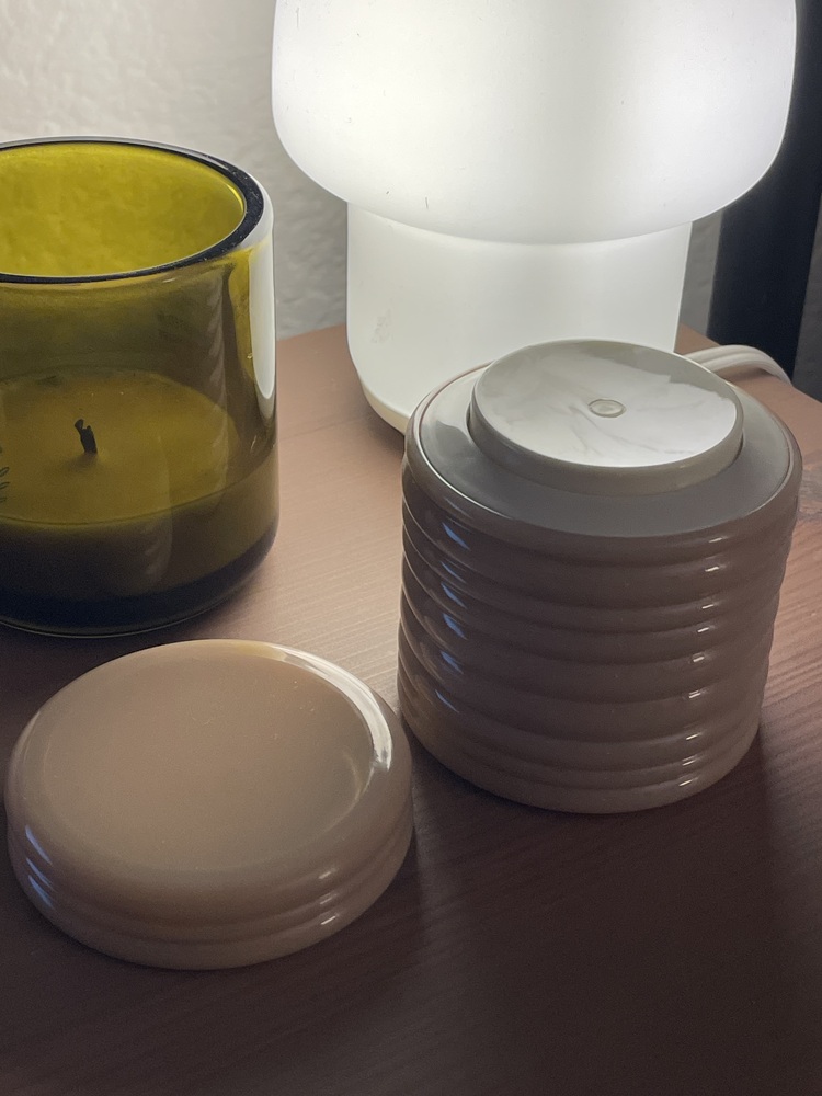 Old lady smell Based on the description (“woodsy musk”) I was expecting something that smelled like patchouli incense and perfume. Luckily it doesn’t smell like that, but unfortunately I don’t super love the way it does smell: The best way I can put it is that it smells the way lipstick did in the 90s. So, a bit like your grandmother’s cosmetics. Too soon to know if it has any effect on my skin, but I love the container. Matches my Dusty Mauve sheets from Quince pretty well, so it looks good on my nightstand.Erin