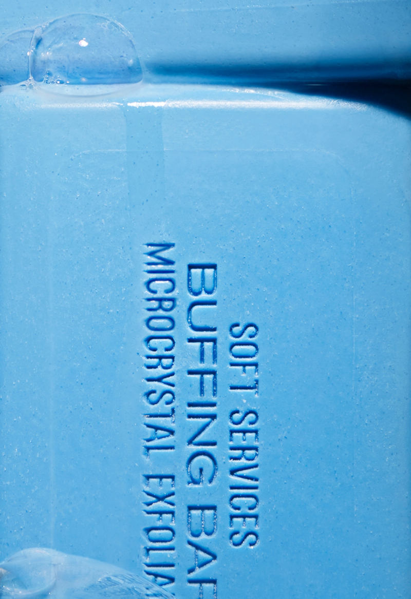 Buffing Bar is a microcrystal exfoliant bar built for physical exfoliation—the choice for rough patches, surface dullness, and skin that just needs consistent sloughing. No messy scrubs.