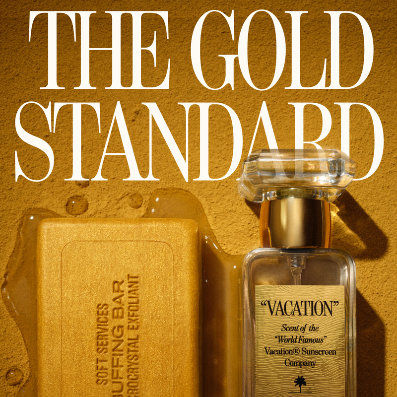 Your standards: unparalleled. Your skincare routine: legendary. Your shower experience: nothing short of paradisical. Introducing the Vacation® x Soft Services exfoliating Buffing Bar — now fragranced with the award-winning signature scent of the Vacation® Sunscreen Company. Indulge in the six-star spa treatment, now within the comfort of your private bathing suite.